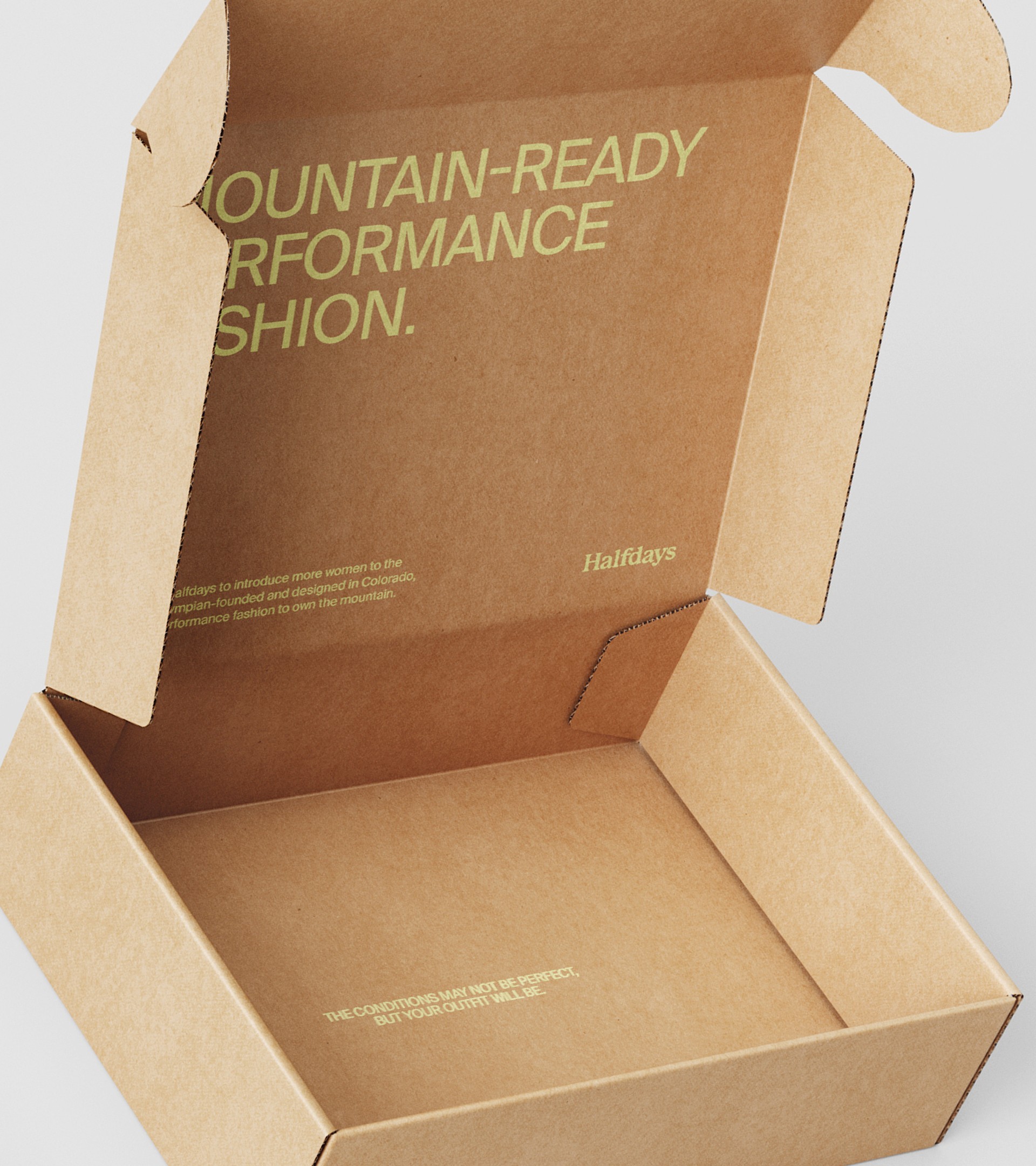 Halfdays, an outdoor apparel brand providing ski and hiking gear for women, sought a brand identity refresh that would preserve their existing logo while completely reinvisioning their approach to customers. The rebrand involved elevating the visual identity to target customers in a higher spending bracket and give a refreshed, chic and sporty feel. What evolved from this was new brand identity through color palette, typography, social templates, ad layouts, merch, and redesign of all tags, packaging, and print materials. Lead Designer: Emily Hall. Director: Jhoanna Flores. Company: Willa Creative.