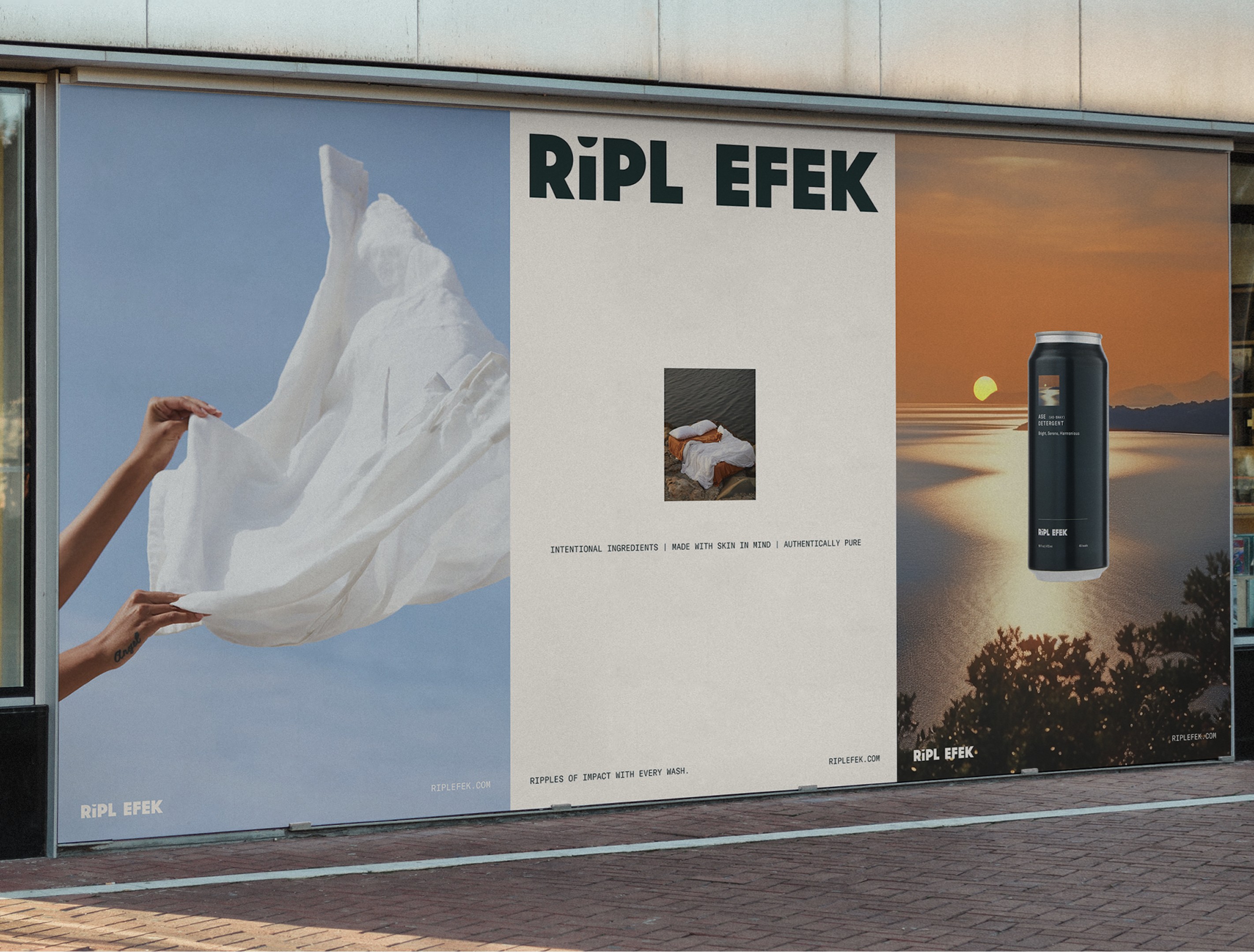 A new and proprietary detergent brand, Ripl Efek needed stronger visual organization to go to market and tell their story. Infusing a rich, comforting, and earthy feel into the brand, the identity was built around their existing logo. From there primary packaging and e-commerce packaging, art direction, and website design unfolded leading up to launch. Art Director & Lead Designer: Emily Hall. Director: Jhoanna Flores. Company: Willa Creative.