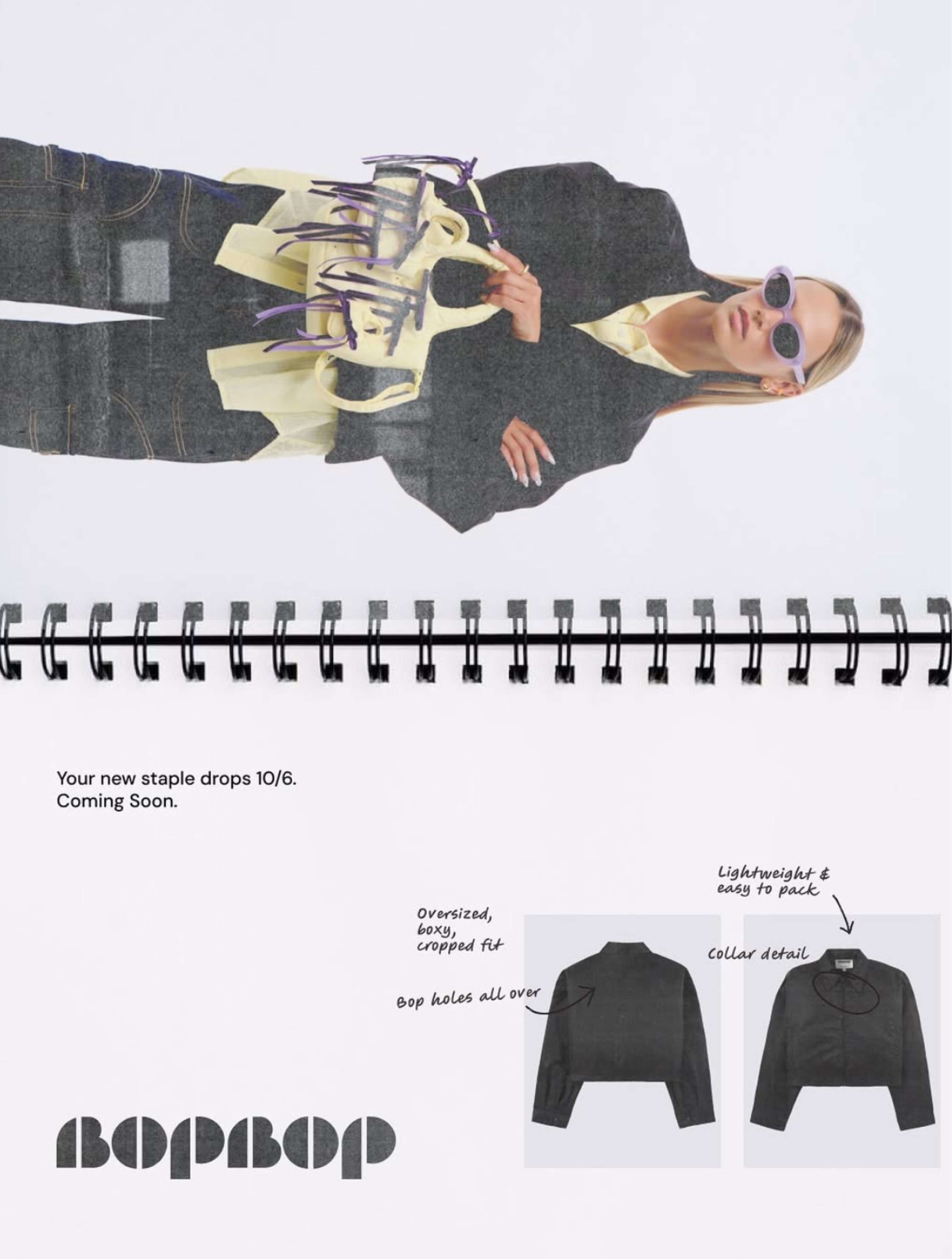 Launched in 2025, BopBop brings whimsy and modular design to apparel, bags, and accessories. Full suite brand identity, packaging, apparel labeling, print, social, web, and more were created. Content & art direction of both evergreen content and go-to-market campaign were part of bringing BopBop to life. Art Director & Lead Designer: Emily Carolina. Director: Jhoanna Flores. Web Designer: Carmen Prado. Supporting Designer: Zuzanna Mlynarczyk. 3D Artist: Bethany Fuller. Photographer: Robby Mueller. Company: Willa Creative.